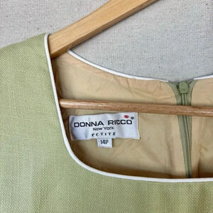 Vintage Donna Ricco Dress 14 Petite Sheath Mini Green Pockets - USA.
