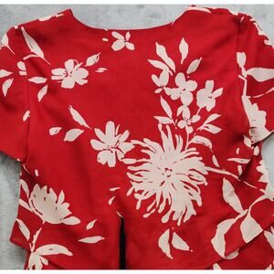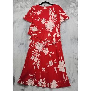 Vintage Donna Ricco Dress Womens 12 Red White Floral Short Sleeve Layered Midi Flowy Ruffled Chiffon Lined Polyester