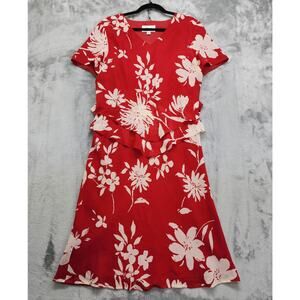 Vintage Donna Ricco Dress Womens 12 Red White Floral Short Sleeve Layered Midi