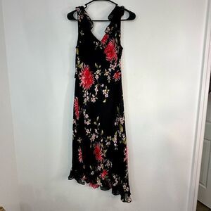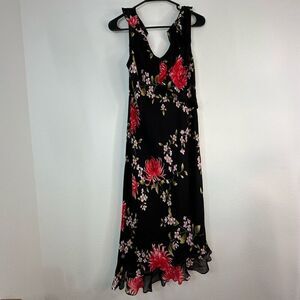 Vintage Donna Ricco Floral Midi Dress Womens 10 Asymmetrical Hem FairyCore