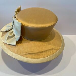 Vintage Donna Vina Couture Satin Hat with Bow Cream
