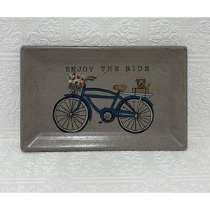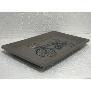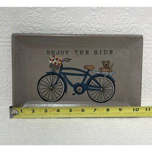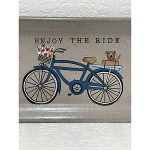 Vintage Donna White Bicycle ‘enjoy the ride’ coin and key wooden tray, rustic