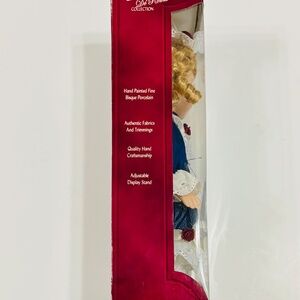 Vintage Donnatella De Roma Genuine Fine Bisque Porcelain Doll. Received as a gift over 25 years ago. The doll has never been out of the package. It is in perfect condition. Hand painted fine bisque porcelain. Authentic fabrics and trimmings. Quality handcraft membership. Adjustable display stand. Comes with its own certificate of authenticity. Manufactured by DanDee international Limited. Fast shipping