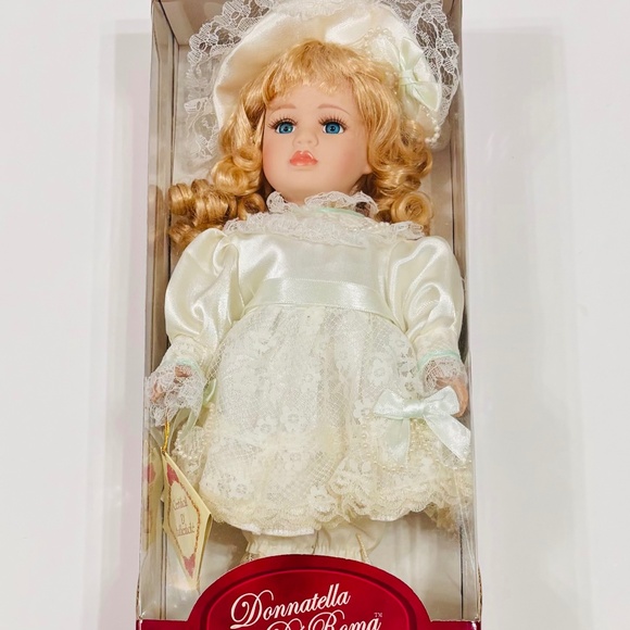 Vintage Donnatella De Roma Genuine Fine Bisque Porcelain Doll. Received as a gift over 25 years ago. The doll has never been out of the package. It is in perfect condition. Hand painted fine bisque porcelain. Authentic fabrics and trimmings. Quality handcraft membership. Adjustable display stand. Comes with its own certificate of authenticity. Manufactured by DanDee international Limited. Fast shipping