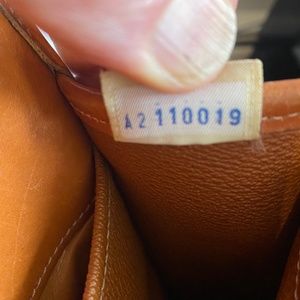 Vintage handmade Dooney & Bourke Leather purse. Beautiful 2 tone brown leather with brass hardware. The purse is in GREAT condition with only a little wear on the underside of the straps. ALL stitching is in perfect condition as well as the inside. We bought the purse at an auction and at the time didn’t have a shoulder strap so we aren’t sure if it even came with one originally. Red, white and blue label with the registration number on the back is the sign of an original Dooney & Bourke
