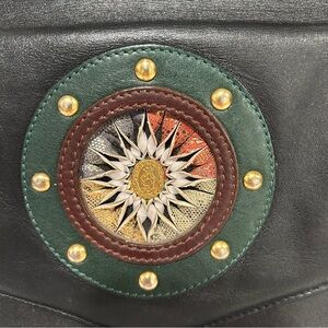 Vintage Donnio Italian Black Leather Satchel Purse with Sunburst Design, Unique