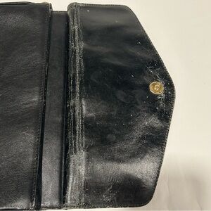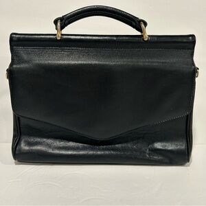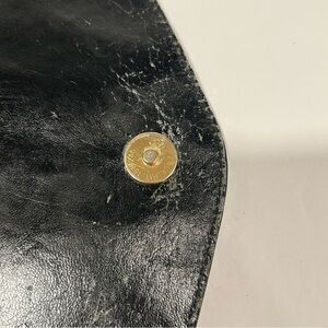 The Vintage Donnio Italian Black Leather Satchel Purse with Sunburst Design is a stylish and unique accessory for women. Made in Italy, this satchel features a rectangular shape with a medium size and a magnetic closure. The black leather exterior with golden hardware accents and a studded sunburst design adds a touch of sophistication to the purse, making it perfect for travel and casual occasions. The black leather top handle and inner pockets and dividers provide both functionality and fashion, making this satchel a timeless and fashionable choice for any wardrobe. This is a unique vintage leather bag! The outside of the bag is in good condition with some minor wear on the corners/edges. The interior has more significant wear, cracks. please see photos and ask if any questions.