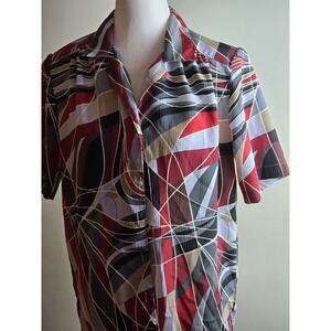 Vintage Donnkenny Classic Blouse Women Size S Artsy Abstract Red Brown EUC