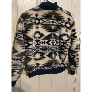 Vintage Donny Brooke Aztec Print Faux Fur Plush Bomber Jacket Size Men’s Large