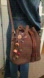 Vintage, 1980's, Dooney And Bourke Gundelta Bucket Bag. Approximate measurements are 11" high, 11" wide and 6" deep. Dark brown nubuck with braided leather drawstring, tassles, brass hardware and thick guitar shoulder strap which can also be worn as a crossbody. Strap measures 2" wide x 48" at it's longest setting. Full grain leather, no lining, suede is on the inside. This purse is clean and has no significant call-outs. The genuine leather flower charm is not included but can be negotiated if you like! In excellent vintage condition!!