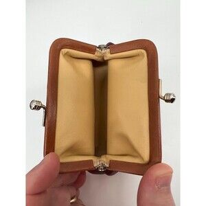 Vintage Dooney And Bourke Peeble Leather Rouge Red Leather Kiss Lock Coin Purse. Great condition. Has some wearing on the duck logo (see pictures).All items come from a clean, smoke free, and cat free household. We do have 2 dogs but they are not around the items.