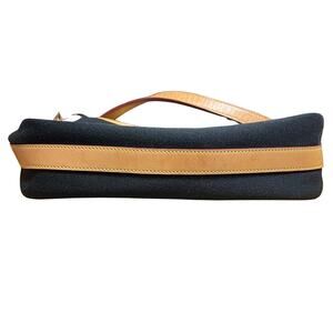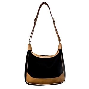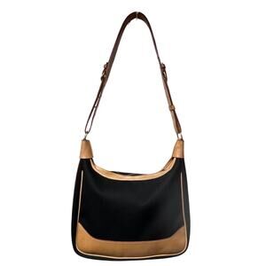 Vintage Dooney & Bourke Black Canvas Tan Leather Trim Adjustable Shoulder Bag