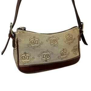 Vintage Dooney & Bourke Canvas Tan & Brown Adjustable Single Strap Shoulder Bag