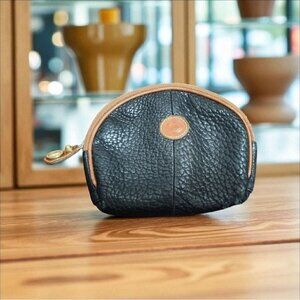 Vintage Dooney & Bourke Coin Purse Black Pebble Leather -Brown Leather Logo RARE