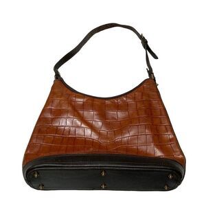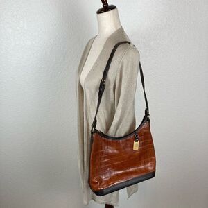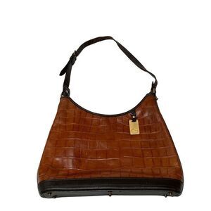 Vintage Dooney & Bourke Croc Embossed Leather Large Hobo Zip Closure Shoulder Bag