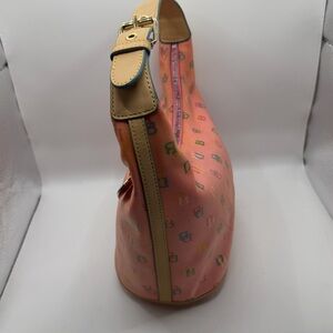 Vintage Dooney & Bourke Heart Charm Logo Patterned Pink Bucket Bag Purse Y2K