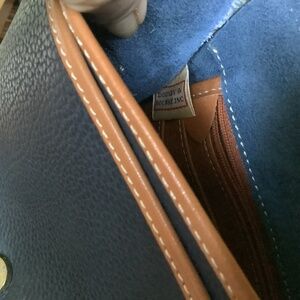 This vintage Dooney & Bourke pebble leather crossbody bag is a navy