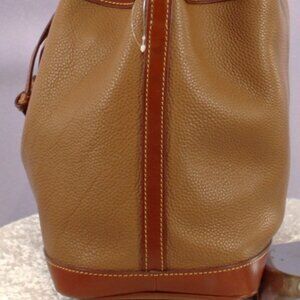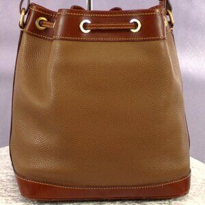 Vintage Dooney & Bourke Pebbled Leather Drawstring Bucket Shoulder Bag Tan AWL