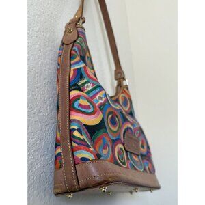 Vintage Dooney & Bourke Rare Multicolored Rainbow Hat Print Hobo Shoulder Bag