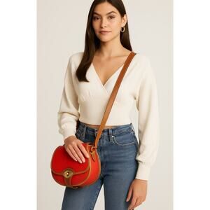 Dooney & Bourke vintage, AWL bag, red crossbody, saddle bag, leather purse, USA made handbag, classic equestrian style, heritage fashion, 80s Dooney, preppy vintage, timeless bag, boho crossbody