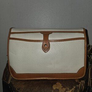 Vintage authentic Dooney & Bourke Surrey Crossbody crafted from iconic All-Weather Leather (AWL) in a beautiful cream pebble leather with rich tan trim.
