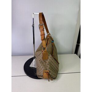 Vintage Dooney & Bourke Tan Signature Canvas Leather Monogram Shoulder Bag Purse