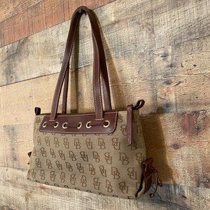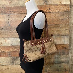 Vintage Dooney & Bourke Tan Signature Jacquard Small Hobo Bag