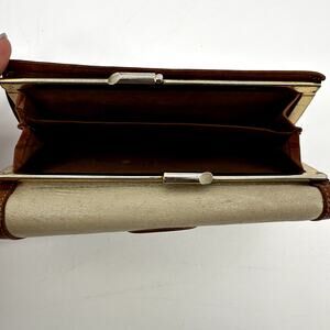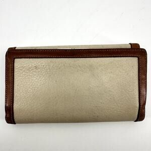 Vintage Dooney & Bourke Wallet 90s All Weather Leather Kiss Lock Checkbook Cream