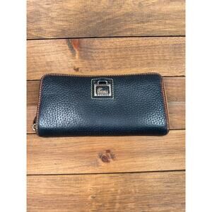 Vintage Dooney & Bourke Wallet Pebble All Weather Leather Black Brown Duck