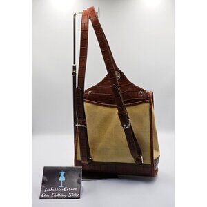 Vintage Dooney & Bourke Women's Brown Croc Embossed Leather Backpack Sz M 2560