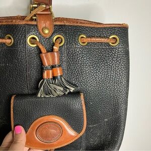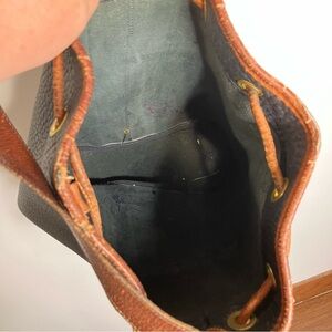 Vintage Dooney & Bourke navy & tan leather AWL sling bag bucket bag