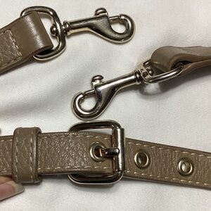 This used Dooney & Bourke satchel is in good condition. This dark Tan leather satchel features a buckled drop handle that can be adjusted from 5” to 7”. 12” zipper opens to a wide interior with a 7” zippered pocket on one side and 3” slip on other . 6” x 4” zippered coin purse comes with bag. 33” buckled adjustable shoulder strap . Signs of wear on interior lining, ink marks , marks on interior lining of both zipper and slip pockets , wear on bottom corners and leather by main compartment zipper. The leather on the bag is in great condition with very minimal light marks . Slight wear on leather of coin purse. This is a great bag with plenty use left. Please look carefully at all pics. Comes with dust bag