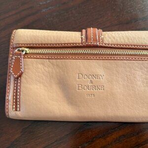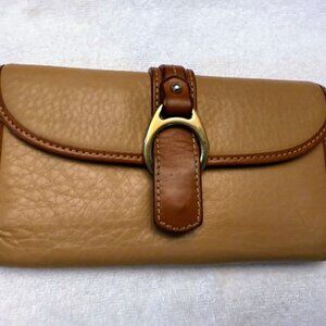 Vintage Dooney & Bourke trifold tan & brown leather wallet