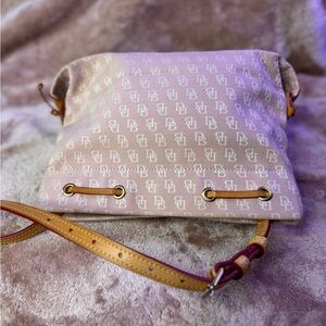 Vintage Dooney & Bourke Bucket Shoulder Bag Pink Logo Monogram Canvas Leather Trim USA