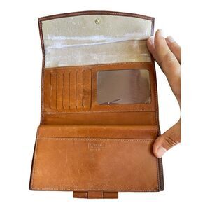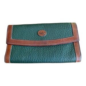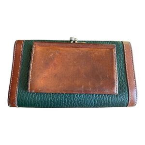 Vintage Dooney & Burke Green Tan Pebble Leather Wallet Coin Purse