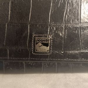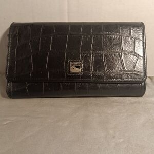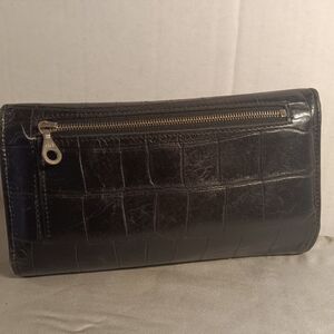 Vintage Dooney and Bourke Black Croc Embossed Leather Tri-fold Wallet