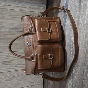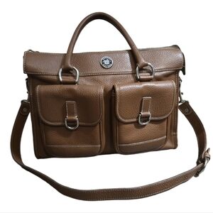 Luxurious Dooney & Bourke Double Pocket Large Satchel/Tote in Tan Brown Leather, Good Used Condition (GUC)