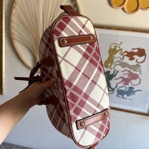 Vintage Dooney and Bourke Cranberry Plaid Leather Zip Zip Domed Satchel Handbag