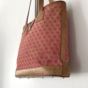 Vintage Dooney Bourke Shoulder Bag Tote Light Red Signature Monogram Large RARE
