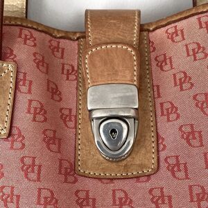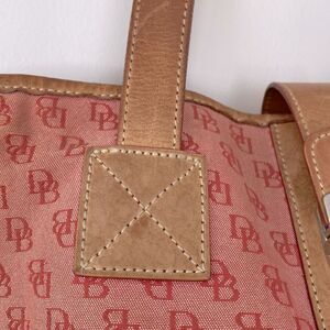 Vintage Dooney and Bourke Light Red Coral Pink Tan Monogram Tote Shoulder Bag