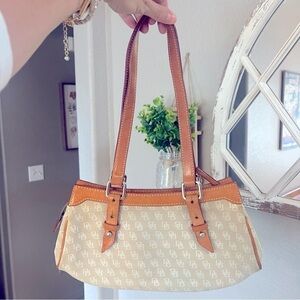 Vintage Dooney and Bourke Tan Leather and Fabric Logo Shoulder Bag