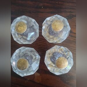 Vintage Door Knobs Handles Cut Glass Crystal Brass Old Antique