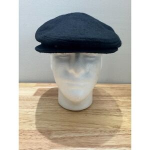 Vintage Dorfman Pacific Small Black Flat Cap. Clean and in good condition. Two snap buttons on brim for diverse style and fit. There is a short elastic piece woven in the back of the headband that allows some flexibility in size.