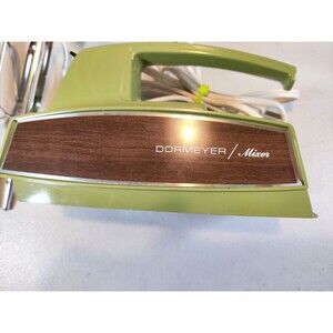 This vintage Dormeyer Hand Mixer Model HM7 in avocado green is a charming addition to your kitchen collection. With its art deco style, rectangular shape, and enamel finish, it'll add a touch of retro flair to any kitchen. This handheld mixer has 100 W power and 3 speeds, making it perfect for whipping, blending, and beating.