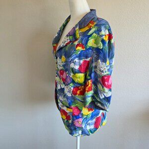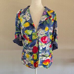 Vintage Dorothy Schoelen Platinum Floral Jacket Blazer Colorful Buttons Size M