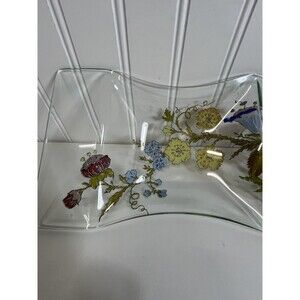 Vintage Dorothy Thorpe Signed Divided Floral Medium Glass Serving Tray MCM