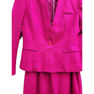 Vintage Dottie R Raspberry Pink Wool One Button Long Sleeve Pockets Jacket Skirt Suit
