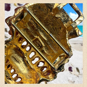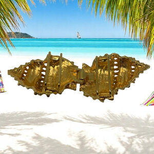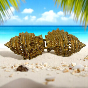 Vintage Dotty Smith Conch Shell Gold Tone Two Piece Belt Buckle Couture Mogul