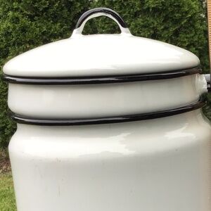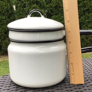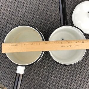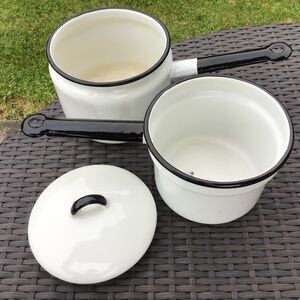 Vintage Double Boiler Enamelware White Black 3 Piece Set Pots & Lid