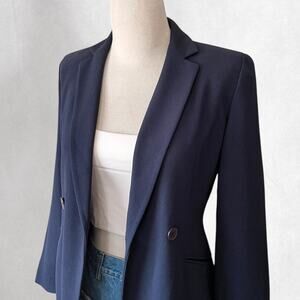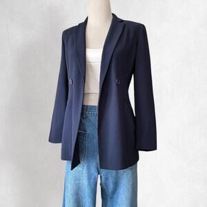 Vintage Double Breasted Blazer Suit Jacket 4P Navy Blue Tailored Minimalist